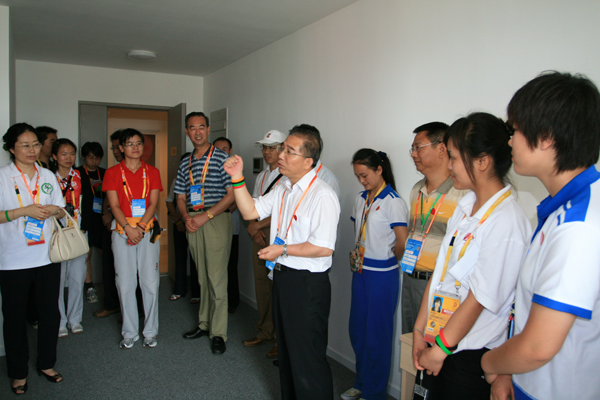 在參觀媒體村健身房過程中,領導們對學校07中醫學五年制劉彥超同學向境外記者展示太極拳等傳統健身功法的做法大加贊賞,希望他繼續努力,將中醫藥傳統文化充分展示給世界。
