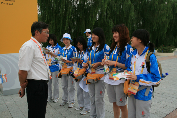 8月11日,校黨委書記吳建偉、校長高思華、副校長王慶國、黨委副書記谷曉紅,在奧組委志愿者部副部長張振良和團市委大學部部長胡九龍的陪同下看望慰問學校奧體中心場館群賽會志愿者。組織部部長馬繼福、人事處處長陶曉華、國際交流與合作處處長傅延