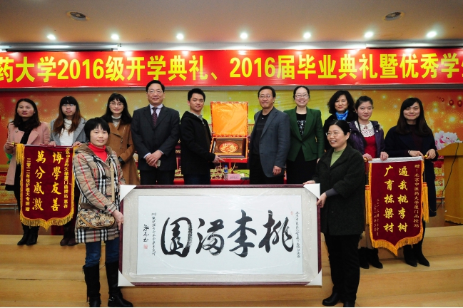 畢業(yè)生及新生代表也在典禮上發(fā)言,表達了對母校、對老師的感激之情和對未來學習生活的美好憧憬,表示今后要努力學習、努力工作,共同將中醫(yī)藥事業(yè)發(fā)揚光大。接著,承載了畢業(yè)生濃濃情意的的漆線雕等工藝品被作為畢業(yè)留念贈送給函授站,領導們從畢業(yè)生手中接過了禮物,也收下了畢業(yè)生對母校的思念與留戀。