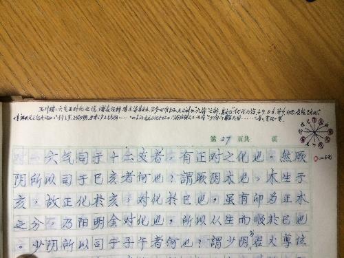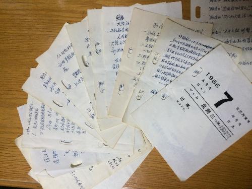 在整個訪談過程中,郭教授不時轉身,從身旁的箱子內拿出王老生前的筆記、資料,向我們展示、講解。翻看王老的筆記本,大多是廢紙、舊紙粘貼裝訂而成,即便是一張小小的32開臺歷紙,也都密密麻麻承載著王老辛勤的汗水與扎實的醫學功底。雖然紙張破舊,但王老雋秀的字跡清晰可見,筆跡工整、內容豐富、圖文并茂,讓我們大為震撼。透過這些珍貴的資料,我們可以強烈地感受到,王老對于學術研究有著一顆無比熱忱的心。在提及王老與學生的情誼時,郭教授更是笑容滿面,言語中流露出對于王老的感恩與懷念。采訪結束時,郭教授還贈予我們兩篇王老的文章,并選取其中部分段落,逐字逐句地念給我們聽,覺得見解獨特之處還為我們加以講解,郭教授不住地感嘆道:“王老雖然嘴上不說,但他心理什么都明白,不善言辭的他筆鋒犀利,措辭幽默,言論新穎。王老走了,是我們中醫學界莫大的損失”。