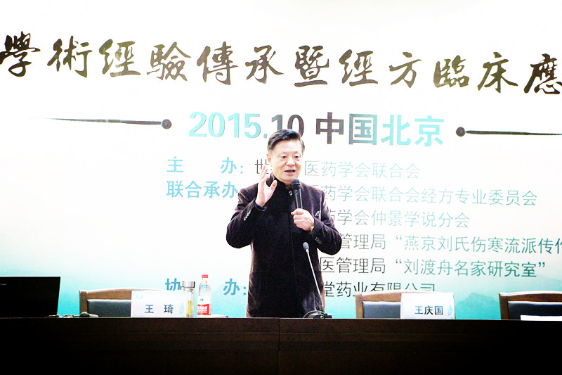 10月23日至25日,由世界中醫藥學會聯合會主辦,世界中醫藥學會聯合會經方專業委員會、中華中醫藥學會仲景學說分會、國家中醫藥管理局“燕京劉氏傷寒流派傳承工作室”、北京市中醫管理局“劉渡舟名家研究室”聯合承辦的“劉渡舟教授學術經驗傳承暨經方臨床應用高級研修班”在我校舉行,來自全國各地、港澳臺地區以及我校師生300余人齊聚一堂、學習交流。國醫大師、我校終身教授王琦,我校黨委副書記靳琦,世界中醫藥學會聯合會副秘書長姜再增,我校原副校長王慶國,我校遠程教育學院院長李宇航出席本次研修班。開幕式由李宇航教授主持。